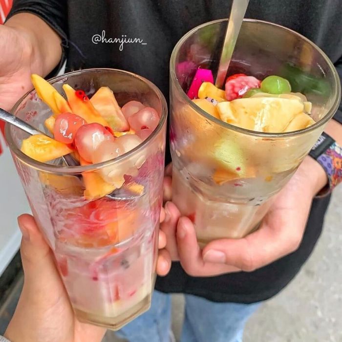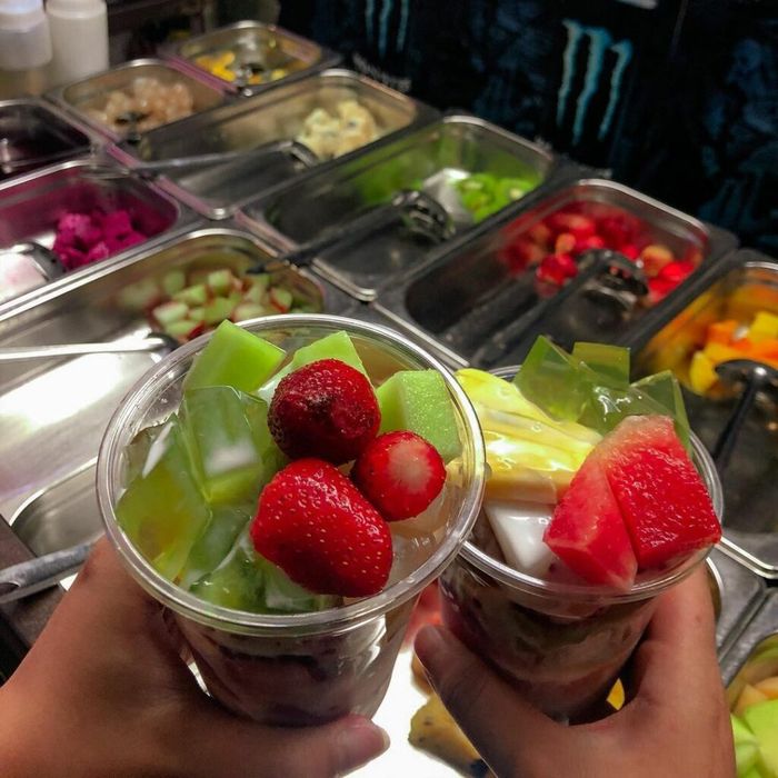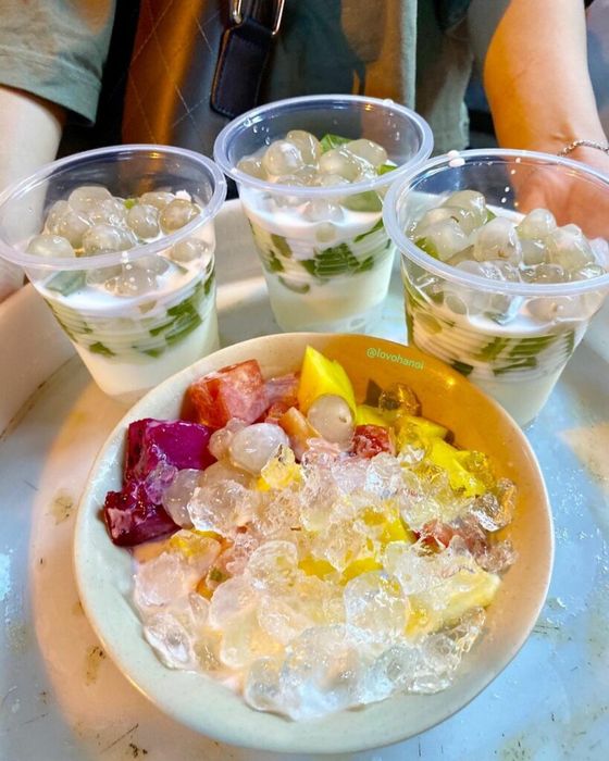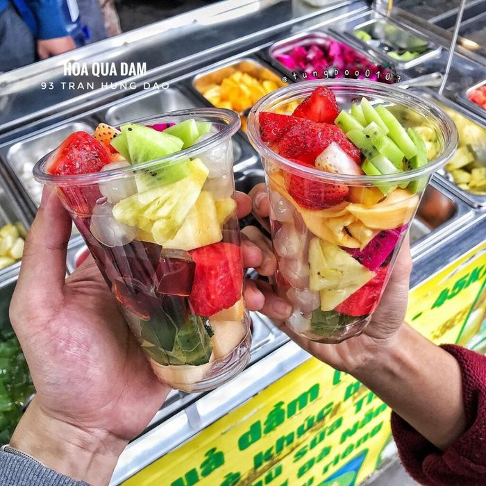 Mỗi cốc buffet trái cây tại đây đều quyến rũ với đủ loại như dưa hấu, xoài, lê, thanh long, táo… Những trái cây với màu sắc tươi tắn, kết hợp cùng nước cốt dừa, sữa đặc, kem sữa… Hương vị thanh mát của trái cây, hậu ngậy của nước cốt dừa, độ mịn màng của sữa đặc… sẽ làm cho bạn mê mẩn trong những ngày nắng nóng ở Hà Nội.