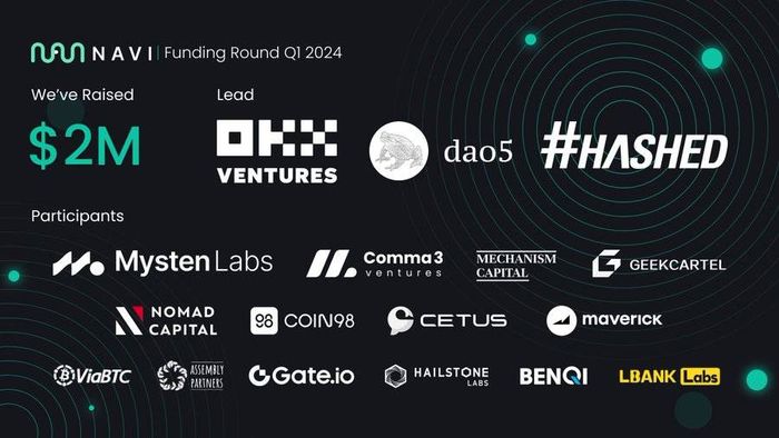 Các nhà đầu tư của Navi ProtocolNavi Protocol nhận được 2 triệu USD từ các quỹ đầu tư như Mysten Labs, OKX Ventures, Coin98, Gate.io Labs, ViaBTC,...