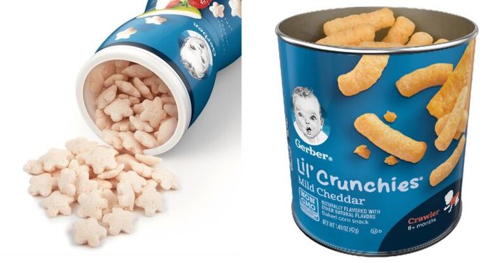 Bánh ăn dặm Gerber hiện có hai loại chính là hộp cao và hộp thấp, đều có trọng lượng 42g.