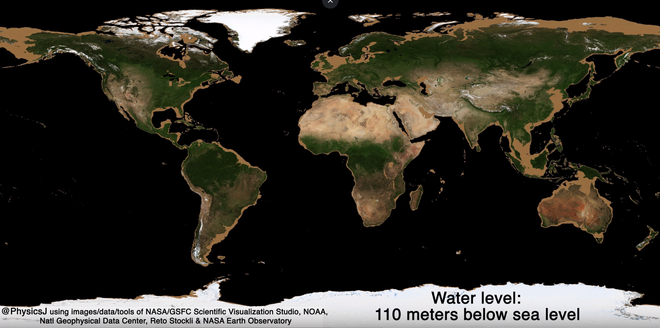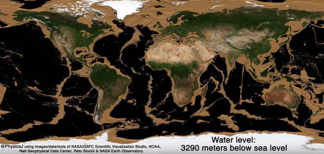 Video của NASA cho thấy sự thay đổi của Trái Đất khi đại dương cạn khô. Mực nước biển giảm đến hàng km, tạo ra những biến đổi đáng kinh ngạc.