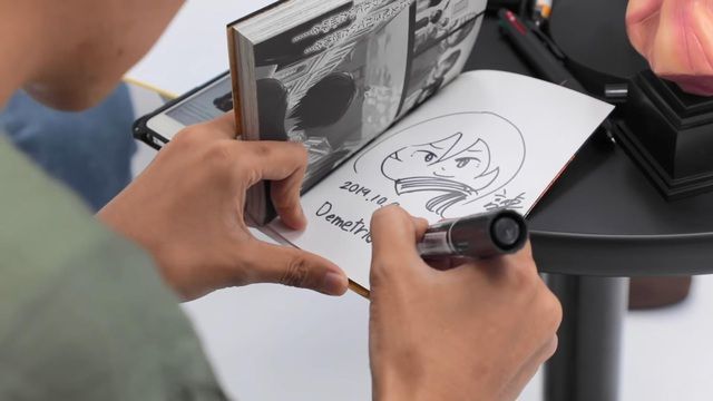 Khi được hỏi về nhân vật yêu thích, tác giả Hajime Isayama cho biết ông thích Reiner Braun nhất. Ông cũng chia sẻ về quá trình vẽ truyện của mình, bộ truyện đã đăng mỗi tháng trong suốt 10 năm qua, với 45 trang mỗi tháng.