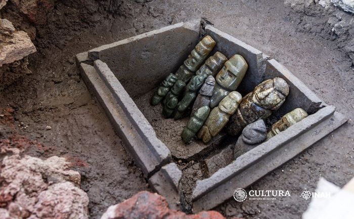 Trong nhiều năm qua, các nhà khảo cổ học đã khai quật nhiều đồ vật tại Templo Mayor, nằm ở trung tâm của thủ đô cổ đại Tenochtitlán của người Aztec, hoặc Mexica, gần nhà thờ chính thức của Mexico City ngày nay. Đợt khai quật gần đây nhất, là lần thứ 186 tính đến thời điểm này, được thông báo vào tháng 8: một chiếc hòm đá chứa đựng các đồ vật từ biển cả và 15 tượng người hình trong đá xanh, có niên đại từ thời kỳ cai trị của Moctezuma Ilhuicamina (1440–69).