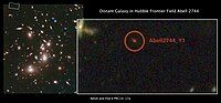 Bằng chứng về sự xuất hiện của các thiên hà cổ xưa được phát hiện vào năm 2006, khi các nhà thiên văn quan sát thiên hà IOK-1 có độ dịch chuyển đỏ cực kỳ cao là 6,96, tương ứng với khoảng thời gian 750 triệu năm sau Vụ Nổ Lớn, làm cho nó trở thành một trong những thiên hà xa nhất từng được phát hiện. Mặc dù một số nhà khoa học đã chỉ ra các thiên thể khác như thiên hà Abell 1835 IR1916 có dịch chuyển đỏ cao hơn, thiên hà IOK-1 và các thành phần của nó đã được nghiên cứu kỹ lưỡng. Đến tháng 12 năm 2012, các nhà thiên văn thông báo rằng thiên hà UDFj-39546284 là một trong những thiên hà xa nhất với dịch chuyển đỏ đo được là 11,9, tồn tại khoảng '380 triệu năm' sau Vụ Nổ Lớn (khoảng 13,8 tỷ năm trước), ánh sáng từ thiên hà này cần 13,42 tỷ năm để đến Trái Đất, và khoảng cách thực tế còn lớn hơn do sự giãn nở của vũ trụ. Sự tồn tại sớm của những tiền thiên hà này cho thấy chúng đã phát triển từ trong 'Kỷ nguyên tối'.