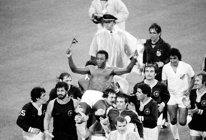 Pelé vào năm 1977, lúc đó ông tham gia trận đấu cuối cùng cho CLB New York Cosmos (ảnh của Richard Drew).