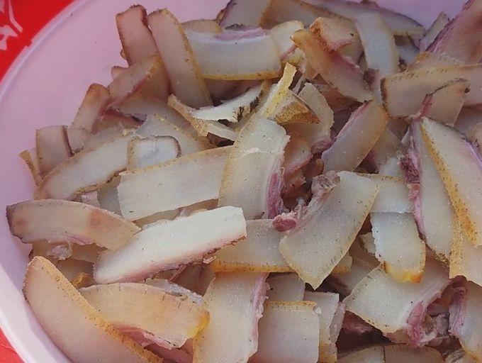 Cách nhanh hơn, gọn gàng và ít công đoạn hơn là hơ da trên bếp lửa để loại bỏ lớp lông dày cứng, sau đó cạo kỹ phần vỏ đen, đun luộc trong khoảng 1 tiếng hoặc cho đến khi chúng sần sật, vừa ăn là được. Sau khi vớt ra, ngâm da trong nước lạnh trước khi thái thành miếng mỏng để ăn, đảm bảo độ giòn, dai.