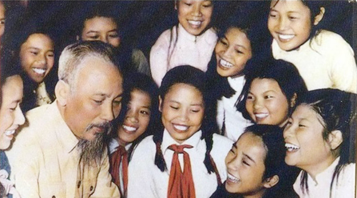 Hình ảnh Bác Hồ bên cạnh các em thiếu nhi