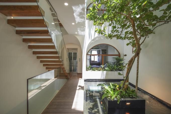 Giếng trời và cây xanh mang đến ánh sáng tự nhiên và không khí trong lành cho VUx House.