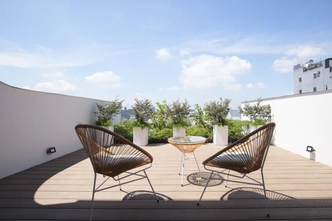 Góc nào của VUx House cũng tràn đầy cây xanh, sân vườn tầng 4 cũng không ngoại lệ.
