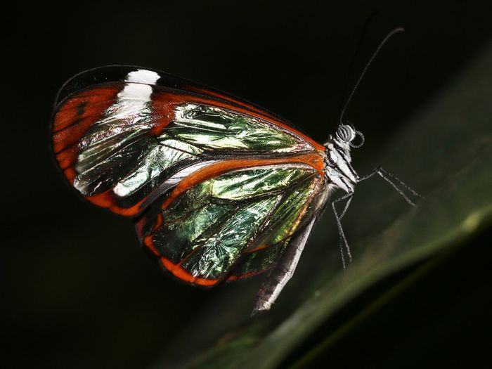 Bằng cách nghiên cứu cánh của loài Greta oto, còn được biết đến với tên gọi là bướm cánh kính, ở các giai đoạn khác nhau của quá trình phát triển phấn con, Pomerantz và đồng nghiệp tại Đại học California, Berkeley, Trung tâm Nghiên cứu sinh học biển ở Woods Hole, và Caltech đã phát hiện một số yếu tố. Có sự thay đổi về hình dạng và mật độ của những vảy siêu vi nhỏ thường tạo ra các mô hình màu sắc của bướm. Một lớp cột nhỏ nhỏ chống chói cũng hoạt động giống như một lớp phủ chống chói bổ sung.