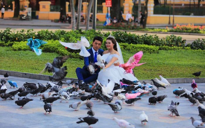 Nằm phía trước nhà thờ Đức Bà TP HCM là một khu công viên xanh mát. Đây là điểm đến ưa thích của nhiều bạn trẻ, thu hút sự chú ý khi check-in. Tâm điểm của công viên là bức tượng Đức Mẹ Hòa Bình làm từ đá cẩm thạch trắng của Italy. Điều đặc biệt là đàn bồ câu sống tại đây. Chỉ cần ít bánh mì hoặc hạt nhỏ, bạn có thể thuần phục đàn bồ câu dễ thương này. Chúng thậm chí còn sẵn lòng chụp ảnh lưu niệm với bạn đấy!