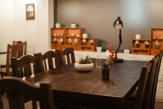 Bàn dài ở gian sau tầng 2, ít view nhưng yên tĩnh, thích hợp đọc sách và làm việc.