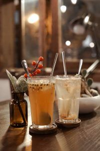 Quán chỉ phục vụ 2 loại đồ uống là cafe và trà, tên gọi các thức uống tại Nhà Trong Ngõ mang phong cách độc đáo và thú vị.