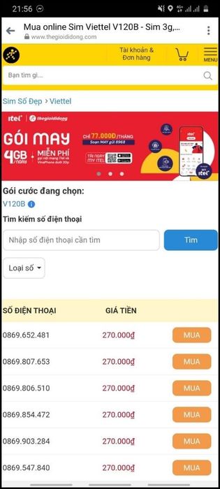 Bước 2: Chọn số điện thoại theo nhu cầu của bạn > Mua