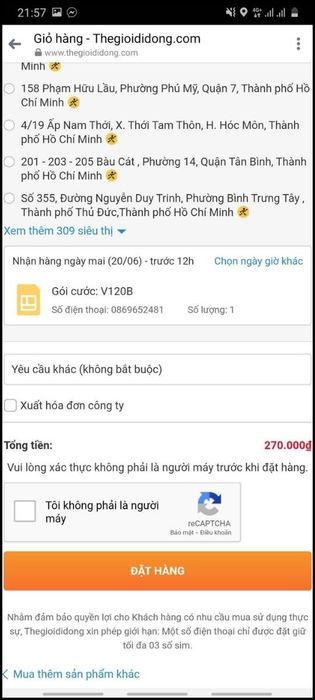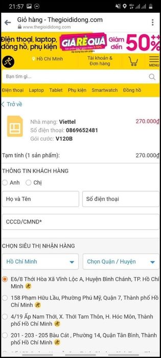 III. Hướng dẫn mua SIM kèm gói cước V120B của Viettel tại Thế Giới Di Động