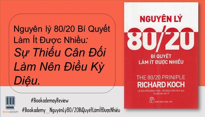 Nguyên lý 80/20 Bí quyết làm ít nhưng đạt nhiều của Richard Kock đưa ra nguyên lý giúp bạn làm “ít” nhưng nhận được “nhiều” hơn. Chúng ta ai cũng yêu thích sự cân bằng, thậm chí cho rằng, bạn bỏ ra càng nhiều sức lao động thì bạn sẽ nhận được thành quả xứng đáng. Tuy nhiên, thực tế lại không hề công bằng như vậy. Nói cách khác, cuộc sống không tuân theo nguyên lý 50/50 (50% công sức tạo ra 50% thành tựu), mà luôn là sự mất cân bằng như 70/30, 90/10 hoặc thậm chí 99,1/0,1.