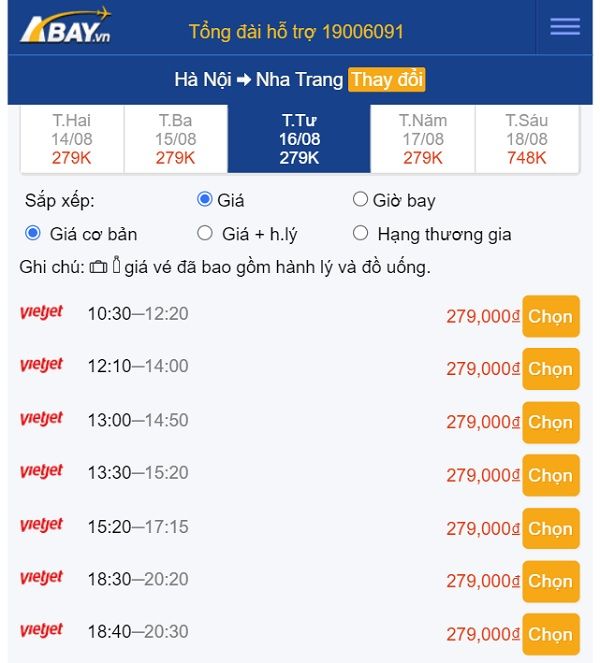 Ngoài vé giá 79.000 đồng, VietJet Air cũng cung cấp vé với giá 279.000 đồng/chiều, chiếm ưu thế trong tháng và có nhiều khung giờ bay hợp lý hơn như 10h30p, 12h10p, 13h30p, 13h50p…