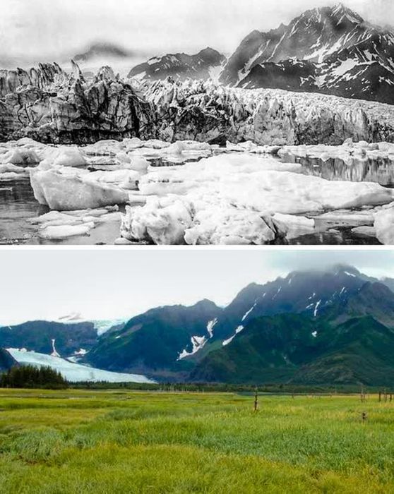 1. Sông băng Pederson, Alaska, cách đây 100 năm và hiện tại