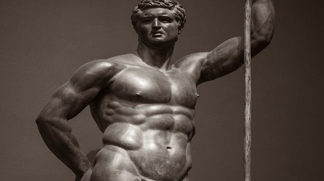 Nghệ sĩ Hy Lạp cổ đại đã thể hiện lý tưởng về vẻ đẹp nam giới qua các tác phẩm nghệ thuật. Người đàn ông đẹp lý tưởng được mô tả là vạm vỡ và săn chắc, giống những chàng trai quyến rũ trên tạp chí ngày nay. Trong các bức tượng, các vị thần thường có cơ bụng hình V, điều mà nhiều người nam thế kỷ 21 mơ ước.