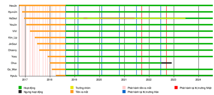 - Thứ tự thành viên được sắp xếp theo thứ tự ra mắt