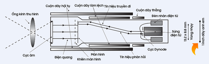 Hãy quay ngược lại khoảng hơn 70 năm trước, vào khoảng năm 54-55, khi các nhà sản xuất máy quay sử dụng các ống đèn chân không (vacuum tube) giống như các TV CRT - Cathode Rat Tubes (như hình dưới đây).
