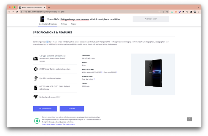 Và ngày nay, với nhiều công nghệ tiên tiến, hiện đại của các thiết bị ghi hình mới, kích thước 1 inch vẫn không thực sự là 1 inch? Đúng vậy. Các hãng vẫn giữ nguyên kích thước như vậy và khi bạn truy cập vào trang web của Sony để xem thông tin về chiếc Xperia Pro-I, bạn sẽ thấy hãng điện tử Nhật Bản sử dụng từ “1.0 type image sensor” thay vì 1-inch sensor như các hãng khác.