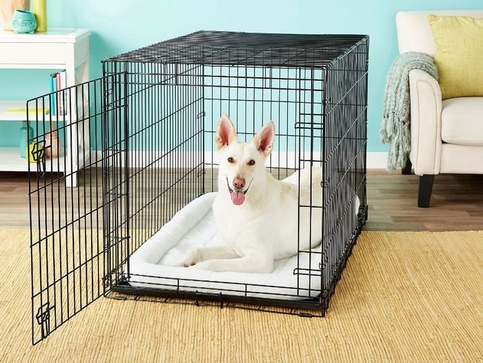 Hãy chọn cho thú cưng của bạn một chuồng ($83) đủ lớn để chúng có thể đứng lên và quay người, và sẽ vừa với một chiếc giường thoải mái và một bát nước. Hãy tháo dây cổ khi chúng ở trong chuồng - những thứ này có thể bị kẹt và dẫn đến thảm họa. Để biết thêm thông tin, Hội Bảo vệ Động vật có một hướng dẫn rất hữu ích về việc huấn luyện chuồng.