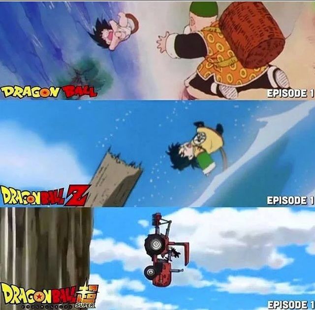 Khá thú vị khi mỗi tập đầu tiên của loạt phim Dragon Ball đều có cảnh một nhân vật rơi từ thác nước hoặc vách đá. Goku trong Dragon Ball, Gohan trong Dragon Ball Z và Goten trong Dragon Ball Super...