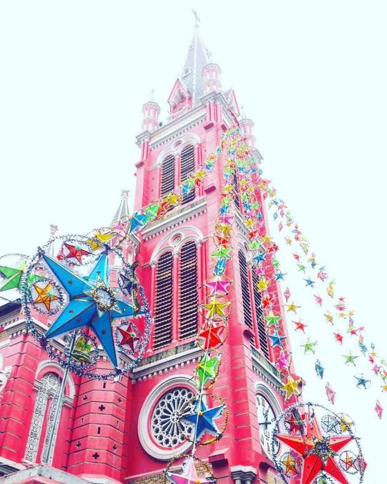 Nhà thờ Tân Định nổi tiếng với kiến trúc độc đáo, màu hồng tươi tắn. Đặc biệt, vào mùa Noel, nơi đây trở nên quyến rũ hơn bao giờ hết, là địa điểm lý tưởng để chụp ảnh cho giới trẻ yêu thích sự sống ảo.