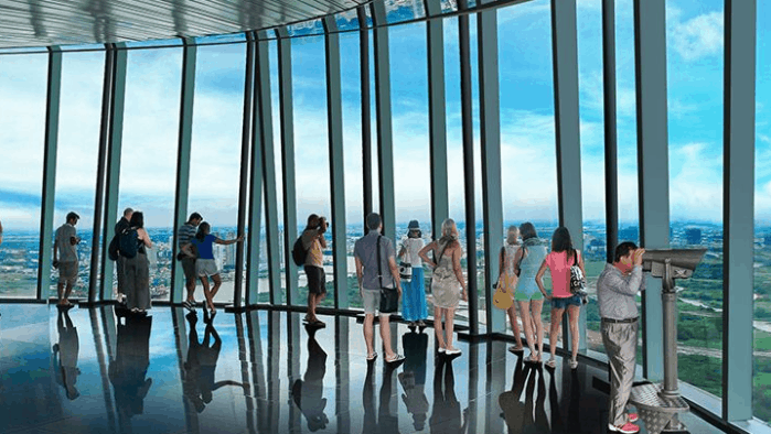 Với vị trí đắc địa bên cạnh khu phố đi bộ, tòa nhà mang đến cho bạn cái nhìn tuyệt vời từ tầng cao 49 thông qua ống nhòm, tạo nên một trải nghiệm thú vị và mới lạ.