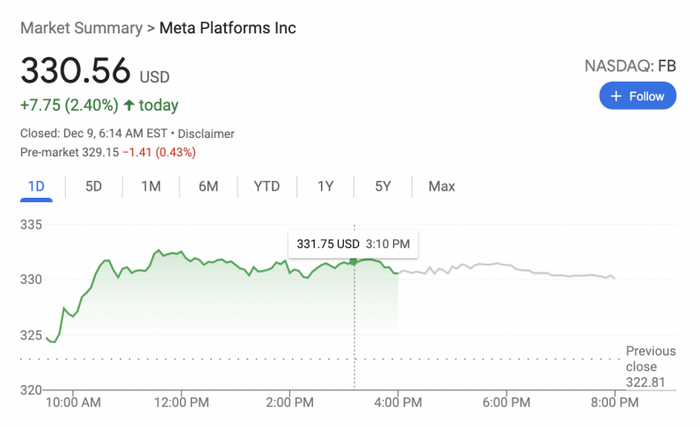 Mặc dù Quốc hội đã đề cập nhiều vấn đề về các biện pháp bảo vệ trẻ em của Instagram, thị trường chứng khoán vẫn lạc quan về Meta. Đến thời điểm viết bài, cổ phiếu của công ty đã tăng hơn hai phần trăm so với đóng cửa lần cuối.