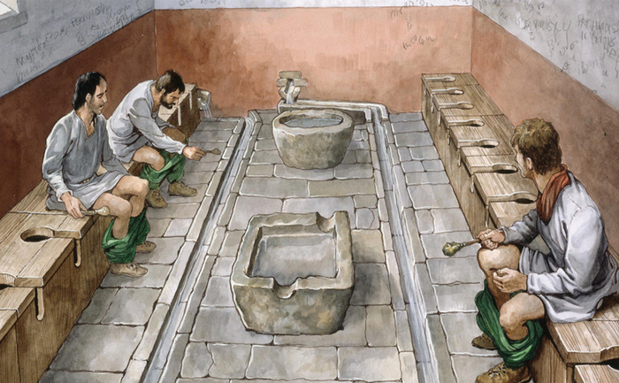 Trong một buổi trưa tươi đẹp, người dân La Mã tại Ostia thường ngồi trong nhà vệ sinh công cộng trò chuyện và chia sẻ với nhau. Những công trình vệ sinh này có thể đón tối đa 20 người cùng một lúc, điều hiếm thấy trong thời hiện đại. Dù cho việc đi vệ sinh thường được xem là riêng tư, nhưng cơ sở hạ tầng thoát nước đã là một trong những phát minh quan trọng nhất trong lịch sử loài người.