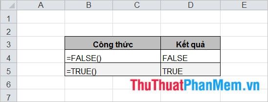 Không cần đối số. Bạn có thể nhập trực tiếp giá trị ĐÚNG hoặc SAI vào công thức hoặc hàm khi tính toán. Excel sẽ tự hiểu đó là giá trị luận lý ĐÚNG hoặc SAI.
