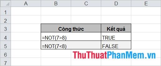 Hàm này trả về kết quả là phủ định của biểu thức logic, hàm KHÔNG trả về ĐÚNG nếu biểu thức logic là SAI và ngược lại.