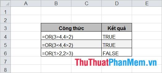 Hàm này trả về ĐÚNG nếu một hoặc nhiều biểu thức là ĐÚNG, trả về SAI nếu tất cả các biểu thức đều là SAI.
