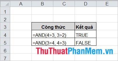 Hàm này trả về ĐÚNG nếu tất cả các điều kiện là ĐÚNG và trả về SAI nếu có ít nhất một điều kiện là SAI.