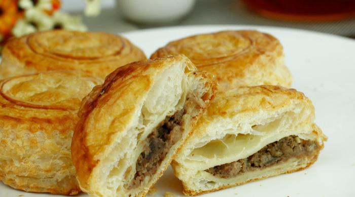 Loại bánh này có nhân thịt bên trong, với thành phần nhân được chế biến từ đường, trái cây và gia vị được kết hợp một cách hài hòa. Mọi thứ này được bọc bên trong lớp bánh nướng hình túi, mang lại hương vị thơm ngon.