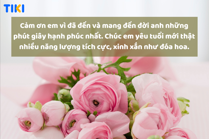 - Chúc mừng sinh nhật, em yêu lần thứ x. Dù ở bất kỳ độ tuổi nào, em vẫn xinh đẹp và quyến rũ như đóa hoa hồng.