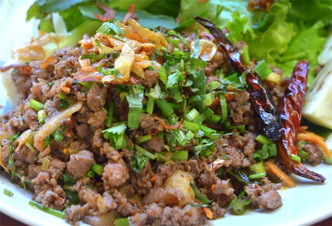 Trái ngược với sự phổ biến của món laap ở phía đông bắc Thái Lan với rau thơm, vị chua và gạo nếp rang xay (thính), món laap muu khua ở miền bắc lại có nhiều thịt hơn, không chua, nhiều gia vị và đặc biệt là vị của hạt tiêu tạo nên hương vị thơm ngon, nồng nàn.