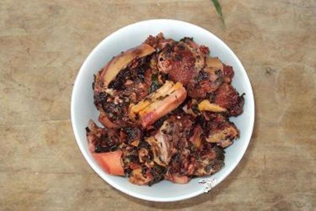 Thịt mắm cơm đỏ người Tày ở Yên Bái mang hương vị đặc trưng của vùng miền núi, đơn giản nhưng đậm đà, được chế biến từ nguyên liệu gần gũi với đời sống quê hương.