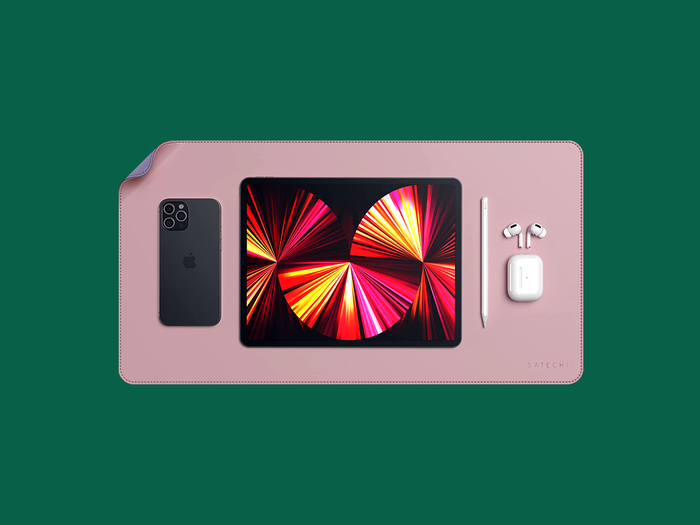 Thảm bàn này có một màu sắc ở mỗi mặt—điều này có nghĩa là bạn có thể chuyển giữa các màu sắc bất cứ khi nào bạn muốn thay đổi không khí. Nó được làm từ da polyurethane, nhưng trông khá đẹp và chuột của tôi trượt mượt trên bề mặt. Giống như thảm bàn của Grovemade, nó cũng dễ lau chùi.