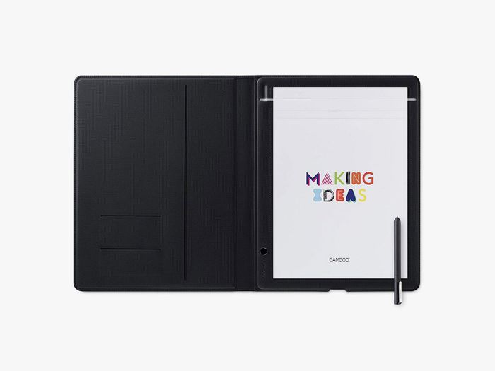 Ai mới là chiếc ốp folio thông minh nhất trong thành phố? Đó chính là Wacom Bamboo Folio. Đây là một chiếc ốp giống như một cái lọt giữ một tấm giấy kích thước thư, nhưng có sẵn sự thông minh tích hợp. Khi bạn sử dụng bút đi kèm, một mảng điện tử tích hợp vào Folio cảm nhận chuyển động và áp lực của bút và ghi lại những gì bạn viết. Khi bạn về nhà và kích hoạt phần mềm Inkspace Plus, nó đồng bộ hóa những đường vẽ và ghi chú của bạn qua Bluetooth với điện thoại thông minh hoặc laptop của bạn. Ứng dụng Inkspace sau đó có thể chuyển đổi chữ viết thành văn bản chỉ với một lần chạm.