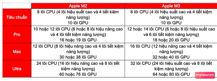 Dưới Đây Là Bảng So Sánh Thông Số Của Dòng Chip M2 và M3