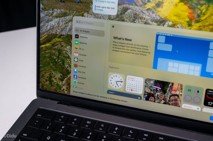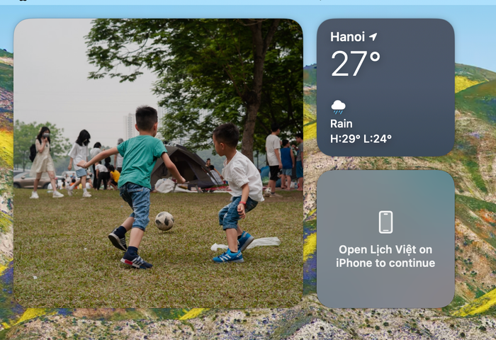 Widget trên macOS đã tồn tại, nhưng nay nó không chỉ giới hạn trong Control Center mà còn được Apple mang ra màn hình desktop trên Sonoma. Theo cơ bản, chúng tương tự như widget trên iPhone, cung cấp thông tin về thời tiết, lịch, đồng hồ... và bạn có thể tự do di chuyển và đặt chúng ở bất kỳ đâu trên màn hình mà không gặp hạn chế như trên iPhone. Đặc biệt, trên màn hình lớn như MacBook, hoặc khi kết nối với màn hình ngoài, widget trở nên lớn mắt và nổi bật.