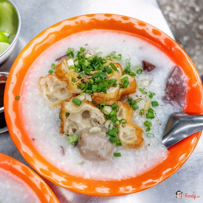 Xem thông tin chi tiết trên Mytour TẠI ĐÂYĐặt món và giao tận nơi: TẠI ĐÂY4. Cháo huyết bò viên & giò heoCháo tại đây có giá trung bình chỉ từ 20k trở lên, phụ thuộc vào loại cháo. Một tô thập cẩm có đầy đủ da heo, dồi, lòng... cùng bò viên. Tô thập cẩm có thêm giò thì giá là 40k. Cục giò ở đây to lắm, có cả nạc và mỡ. Quán có 2 khu vực ngồi: ngoài trời và trong nhà, phục vụ nhanh chóng.