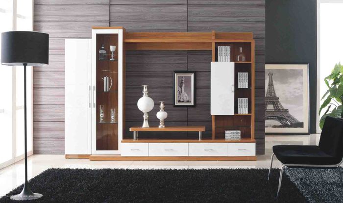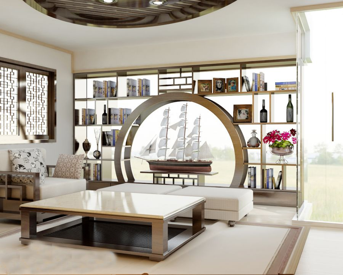 Tủ kệ sang trọng làm điểm nhấn cho phòng khách