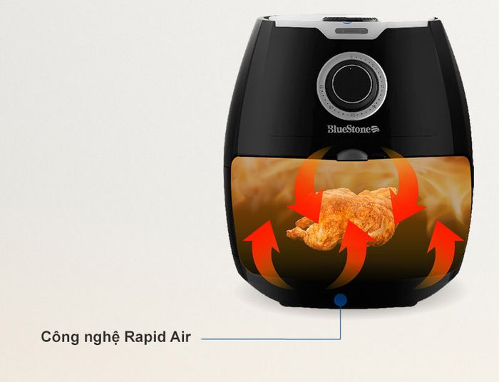 Bluestone AFB-5871 tích hợp công nghệ chiên Rapid Air giúp giảm đến 80% lượng dầu mỡ dư thừa mà vẫn giữ được hương vị tốt nhất cho món ăn.