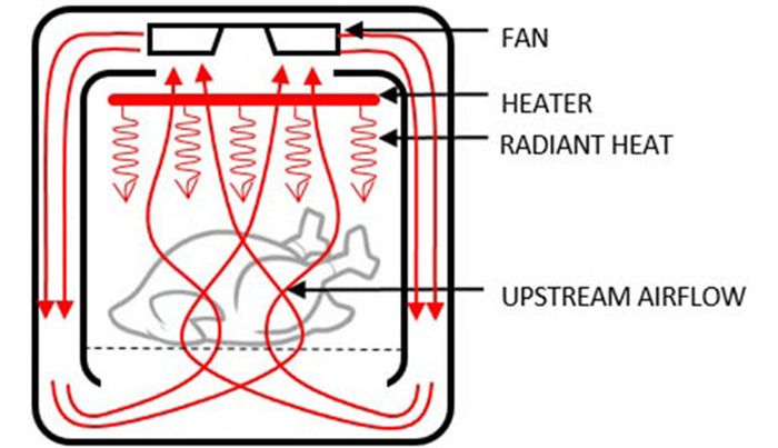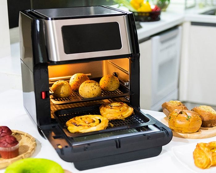 Quạt đối lưu mạnh mẽ đảm bảo thức ăn chín đều, tránh tình trạng cháy khét.