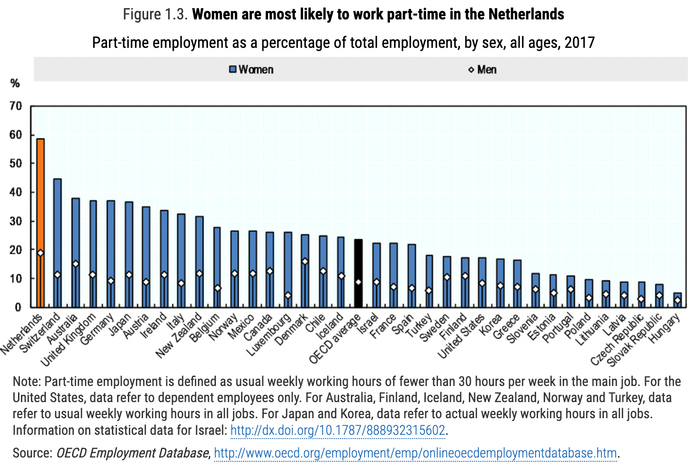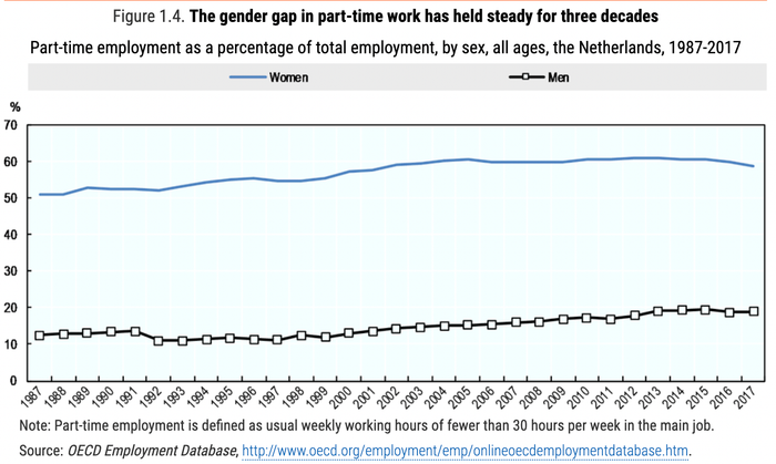 Một ví dụ tốt là trải nghiệm của Hà Lan với việc làm bán thời gian. Mặc dù nó được giới thiệu để giúp nhiều bậc phụ huynh tìm được sự cân bằng giữa công việc và cuộc sống tốt hơn, nhưng lại dẫn đến nhiều phụ nữ hơn nam giới làm việc bán thời gian.