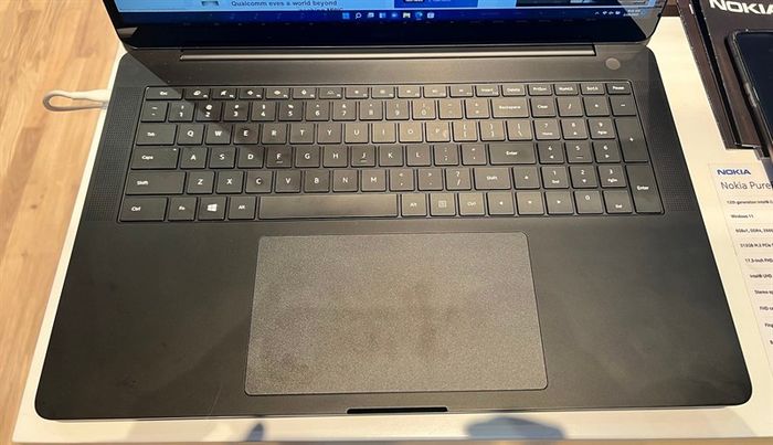 Bàn phím full size rộng và bàn di chuột lớn là điểm nổi bật trên Nokia PureBook 17. Nguồn: TrustedReviews.Phần bàn di chuột rộng trên Nokia PureBook Pro 17 có chất liệu nhám, tạo trải nghiệm sử dụng thoải mái, tuy nhiên có thể khó khi tay đổ mồ hôi.