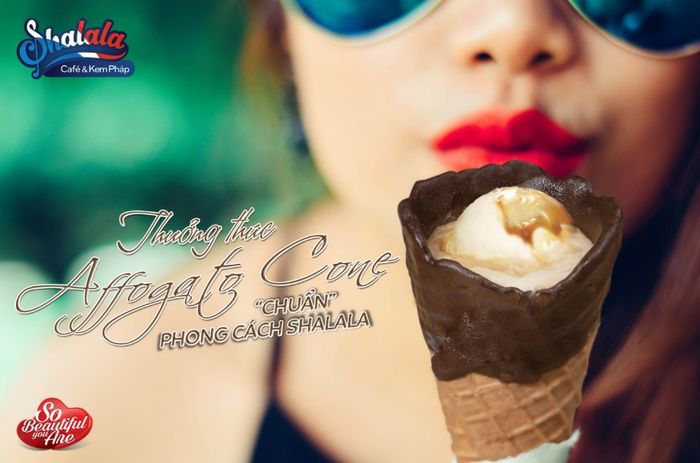 Thưởng thức Affogato Cone theo phong cách Shalala.Với giá chỉ 49k, Affogato Cone không chỉ đặc sắc về hương vị mà còn là công cụ hoàn hảo cho bức ảnh sống ảo lung linh. Một trải nghiệm không thể bỏ qua!